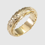 Tento elegantní prsten ohromuje jemným květinovým reliéfem a měkkým zlatým leskem. Je vyroben s důrazem na detail, aby zdůraznil ženskost a jemnost.
