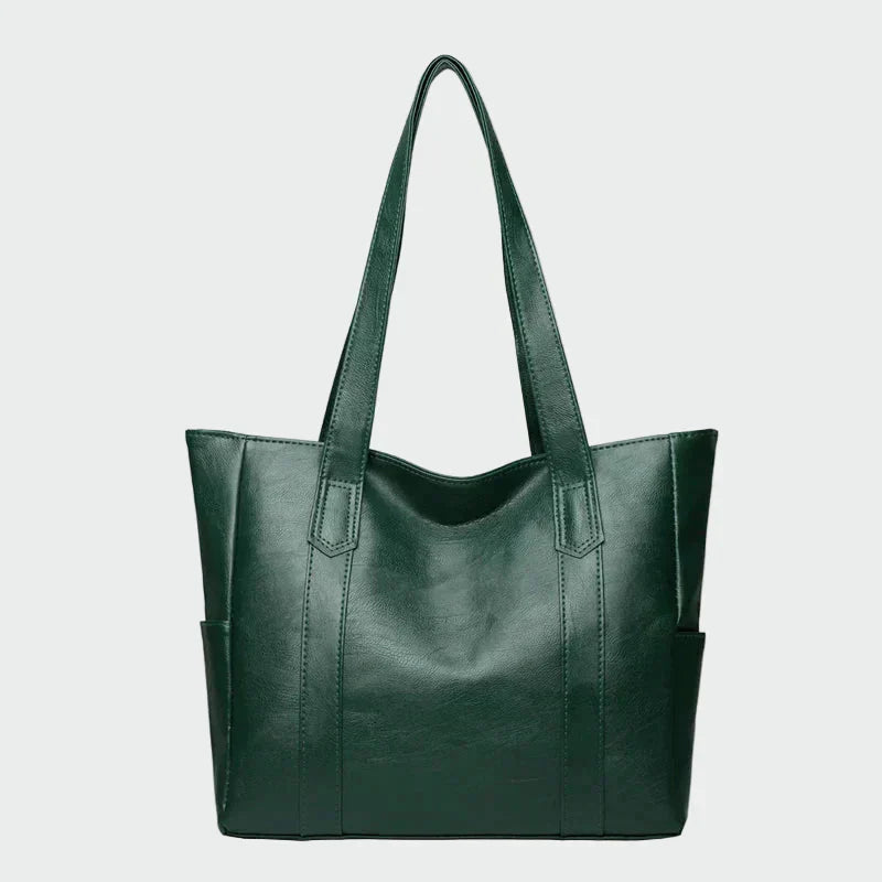 Elegantní kabelka přes rameno v černé barvě s minimalistickým a nadčasovým designem. Čisté linie a prostorný interiér ji činí ideální pro každodenní použití, zatímco praktické boční kapsy přidávají funkčnost. Pevné dvojité uši zajišťují pohodlí při nošení, což z ní činí ideální volbu jak pro kancelář, tak pro elegantní casual vzhledy.